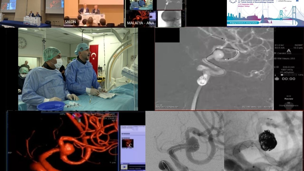 Toplantı kapsamında İnönü Üniversitesi Tıp Fakültesi Turgut Özal Tıp Merkezi Girişimsel Nöroradyoloji Ünitesi’nden Prof. Dr. İsmail Okan Yıldırım ve Doç. Dr. Ahmet Turan Kaya öncülüğündeki ekip, kapalı yöntemle beyin baloncuğu tedavisini canlı yayında yaptı. Beyin cerrahisi anabilim dalından Doç. Dr. Bora Tetik’in de yer aldığı ameliyat, dünyanın farklı ülkelerinden gelen bilim insanları tarafından ilgiyle izlendi.