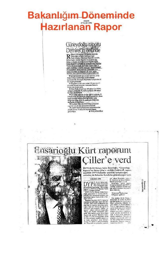 Eski Devlet Bakanı M. Salim Ensarioğlu’ nun açıklaması şöyle;