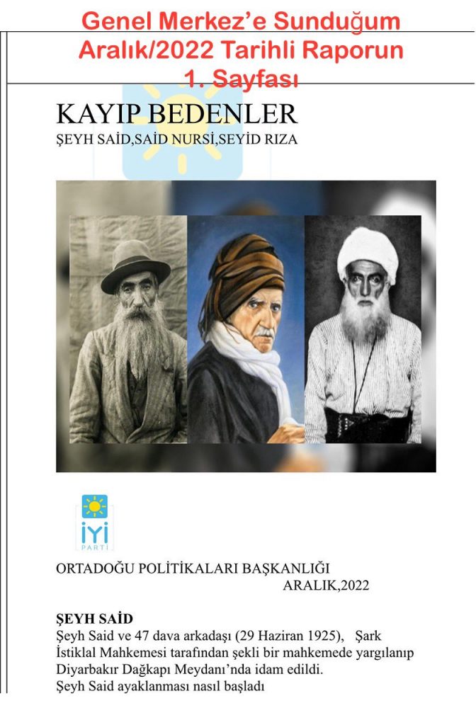 Siyonistlerin Gazze’de işledikleri savaş suçlarına karşı Devletimizin refleks göstermesi için verdiğim soru önergelerinden ikincisi grup başkanvekilliği onayından geçmediği için Ticaret Bakanlığına yöneltilememiştir. Tarafıma uygulanan ambargo, şahsımdan öte merkez sağ çizgisine uygulanan bir ambargoydu. Şeyh Said efendiye dönük yapılan hakaretlere cevap oluşumdaki beyanlarım ilk kez tarafımca dile geliyormuş gibi değerlendirilmesini de hayretle izledim. Zira ben Doğru Yol Partisi döneminde de, Bakanlık yaptığım dönemde de ve İYİ parti içerisinde aktif olduğum süre içerisinde de Şeyh Said efendiye dönük gayri ahlaki tüm yaklaşım ve ifadelerin karşısında durdum. DYP de siyaset yaparken ve bakanlık dönemlerimde; adına ne derseniz deyin Kürt sorununun şiddet sarmalından çıkarabilmek, insanlarımızın akan kanının durdurulması için dönemin koşullarında Kürt sorunun çözümüne yönelik hazırladığım ve bugünkü tartışmaların da yer aldığı raporları 9. Cumhurbaşkanımız merhum Sayın Süleyman Demirel’e ve dönemin başbakanı merhum Sayın Necmettin Erbakan’a ve Başbakan Yardımcımız; Sayın Tansu Çiller’e sunmam günlerce yazılı basınımızda yazılıp çizilmiştir. Ayrıca Şeyh Said Efendi için kamuoyu ile paylaştığım ilk açıklamamda ‘…DAHA ÖNCE DE DEFALARCA DİLEGETİRDİĞİM ÜZERE…’ İfadesini de belirtmiştim. İYİ Parti’nin Ortadoğu politikalarından sorumlu genel başkan yardımcısı iken Aralık 2022’de ‘Kayıp Bedenler’ başlığı ile genel merkeze sunduğum raporu, Bediüzzaman Said Nursi, Şeyh Said, Seyid Rıza ve diğerlerinin naaşlarının ailelerine tesliminin geçmişteki acıları bir nebze de olsa dindirip ülke barışına katkı sunacağı inancı ile vermiştim. Hafıza barışı tabirim tam da buna isabet eden özet bir ifade niteliğindedir. Bu talepler o günlerde tepkisel bir yaklaşıma sebep olmazken, NE HİKMETSE bugünlerde disipline sevkimin gerekçesi olmuştur. Bu da 3.Kongreden sonra oluşan yeni yönetimdeki zihniyetin merkez sağ yörüngesinden savrulmasının ispatlarından biridir.