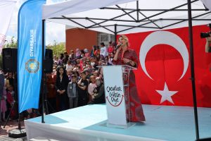 Hayırseverlerin ardından kürsüye çıkan Sanatçı ve Çocuklar Gülsün Diye Derneği Başkanı Gülben ERGEN, okul öncesi eğitimin önemini aktararak Kahramanmaraş merkezli depremlerden etkilenen 11 afet bölgesinde 11 anaokulu projesini hayata geçirdiklerini söyledi. Bütün depremzede çocukların okul öncesi eğitimden faydalanmasını istediklerini ifade eden Ergen, “Her zaman açılışını yaptığımız okulları annelere emanet ediyorum. Her şeyiyle onlar çok güzel bakarlar.” diye konuştu.