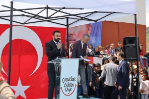 İki derslikli Çocuklar Gülsün Diye Hacı Hamit Kaya Anaokulunun yapımını üstelenen hayırsever Süleyman KAYA ve Kamuran KAYA birer kısa konuşma yaparak küçük yüreklere dokunabildikleri ve rahmetli dedeleri adına okul yaptırdıkları için mutlu olduklarını dile getirdiler.
