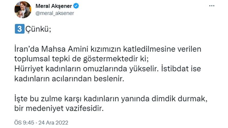 Meral Akşener’in paylaşımında şu ifadelere yer verdi: